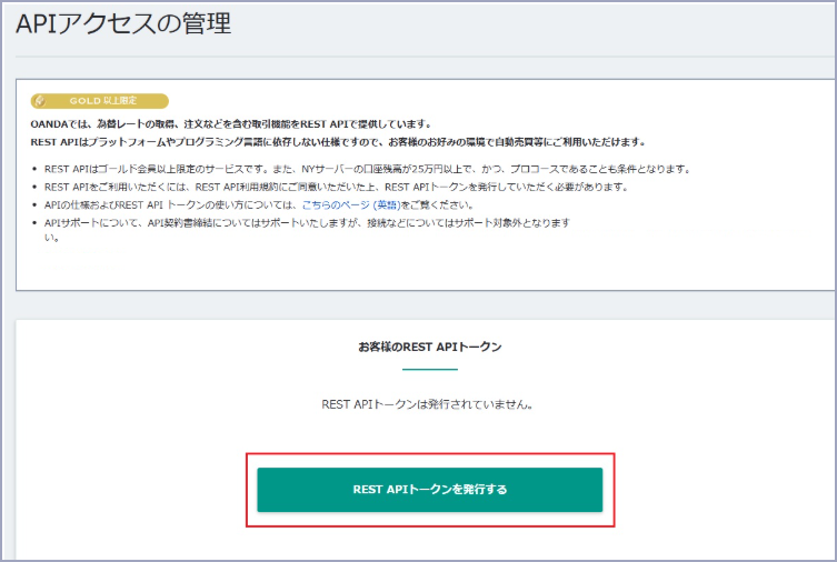2. 「APIアクセス管理」画面の「REST APIトークンを発行する」ボタンをクリックすると、トークンが発行されます。