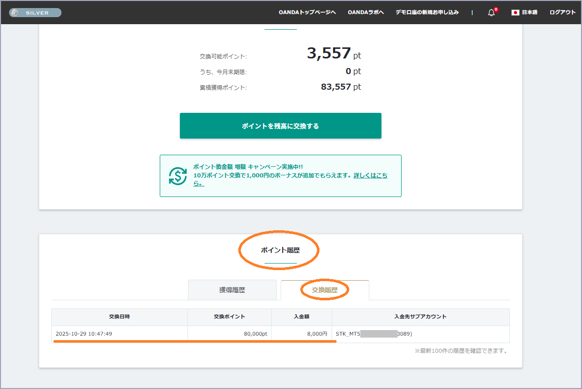 当社でおこなっている、ポイント交換された金額の履歴ご確認は、以下の画面からご確認いただけます。