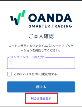 ①ワンタイムパスワード入力画面の下、「別の方法を試す」をクリック。