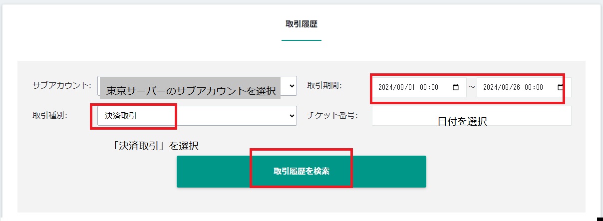なお、東京サーバーのスワップは決済時に付与されるため、ポジション保有中の未確定のスワップにつきましては取引履歴内に表示されません。