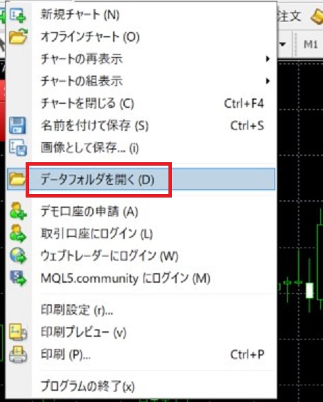 4.MT4を一度閉じて再起動 (再起動しない場合、ファイルが反映されません。)
