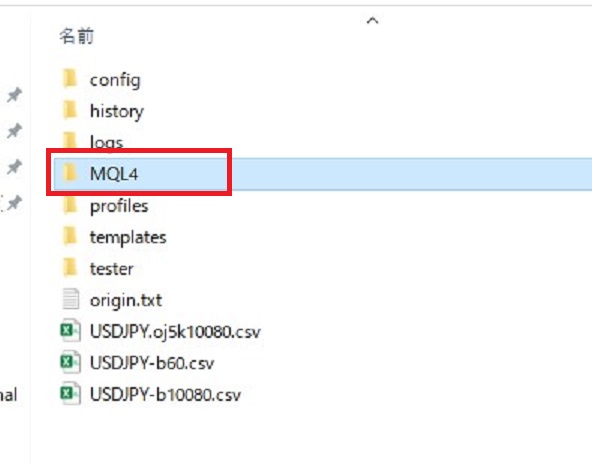 2.MQL4>Expertsを選択 3.このフォルダに該当のEAファイルをコピー・貼り付けまたは移動する
